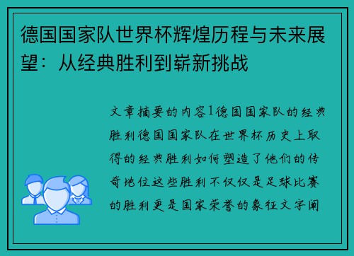 文章摘要:世界杯作为世界足球的最高荣誉,是每一个足球运动员梦寐以求的巅峰时刻。手握世界杯荣耀,不仅是个人职业生涯的顶峰,也是足球梦想与激情的象征。本文将从四个方面详细探讨这一时刻如何展现足球梦想与激情的巅峰对决。首先,我们将分析世界杯对于球员的意义,探讨这一时刻背后的梦想与渴望。其次,我们将讨论足球赛事中的高强度竞技精神,以及如何在压力下实现个人和团队的极限表现。第三,引用某著名大学的研究论文,通...