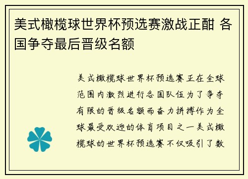 随着2022年世界杯在榕城的完美落幕,这场全球瞩目的足球盛宴以激烈的角逐与令人心潮澎湃的激情时刻,为广大球迷留下了深刻的印象。比赛中的每一秒都充满了紧张与期待,场上的球员们拼尽全力,展现了无与伦比的技术和斗志。同时,球迷们的热情也达到了巅峰,整个榕城成为了激情与梦想的汇聚地。这篇文章将从四个方面详细阐述榕城世界杯精彩落幕的原因,包括比赛的激烈程度、球迷参与的热情、赛事对城市的影响以及体育文化的提升...